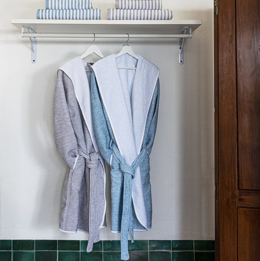 New York Hooded Robe Petrol Blue