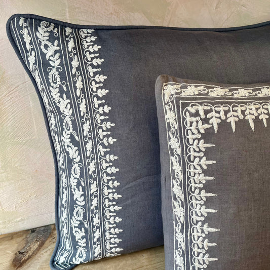 Large Blue Embrodiered Dori Linen Cushion Cover