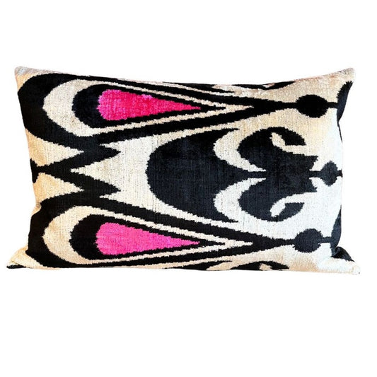 Fuscia Silk Velvet Ikat Lumber Cushion