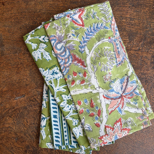 Set of 4 Block Print Green Napkins 45x45cm