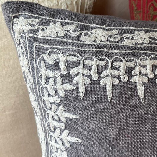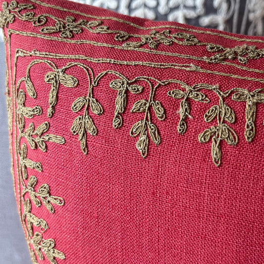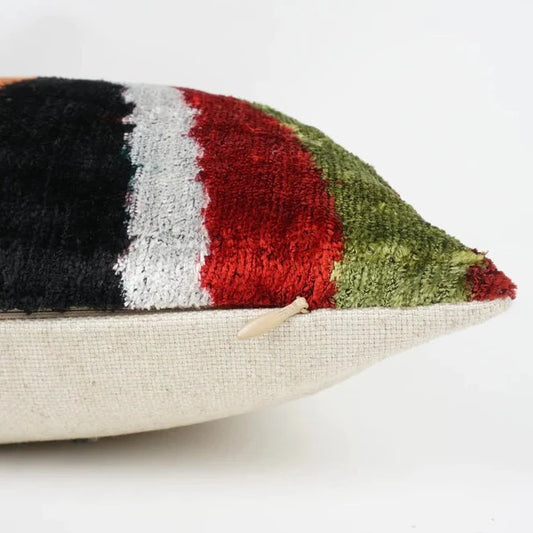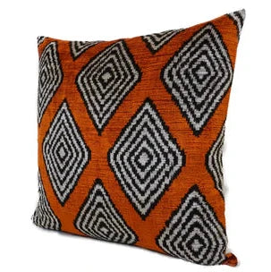 Square Silk Velvet Ikat Cushion - Ginger/Black