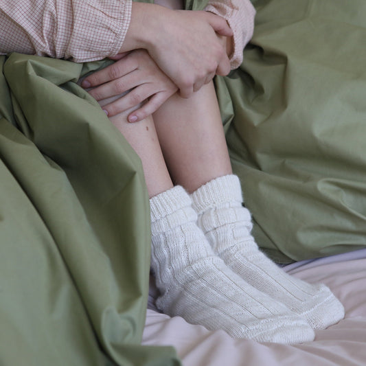 Cream Alpaca Bed Socks Size 4-8