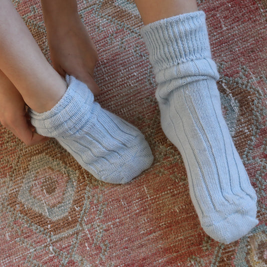 Blue Houndstooth Cashmere Bed Socks Size 4-7