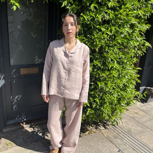 Bolney Mauve Mist Wide Leg Washed Linen Pyjamas