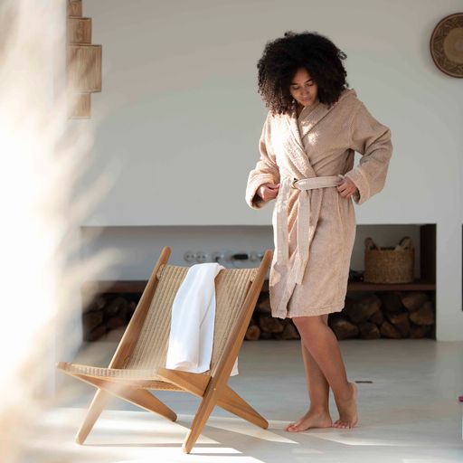 Bee Waffle Hooded Robe White