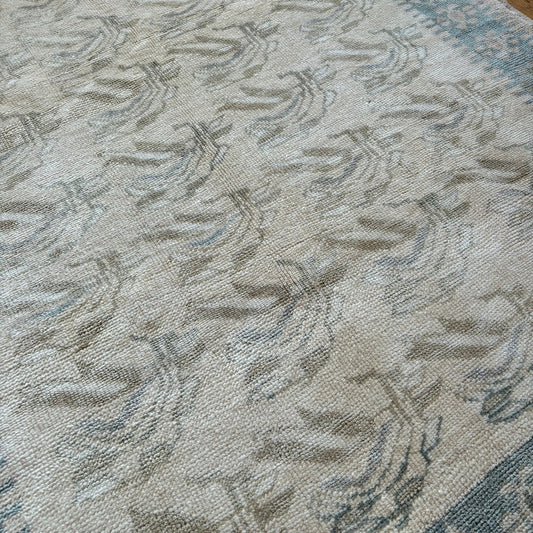 Handmade Blue & Cream Vintage Turkish Rug