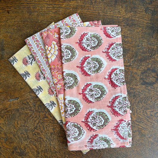 Set of 4 Block Print Pinks Napkins 40x40cm