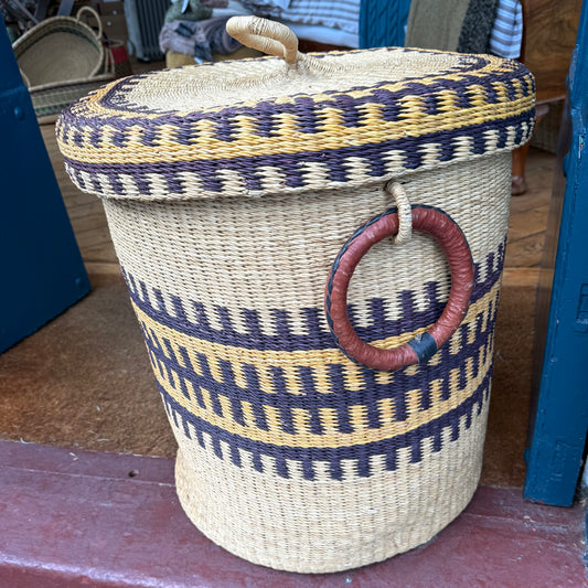 Coloured Lidded Laundry Basket - Purple and Yellow