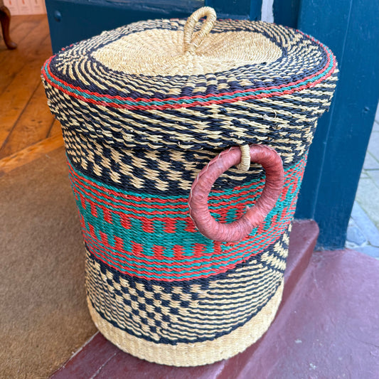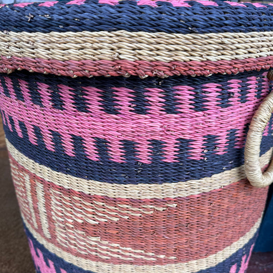 Coloured Lidded Laundry Basket - Pink, Purple & Terracotta