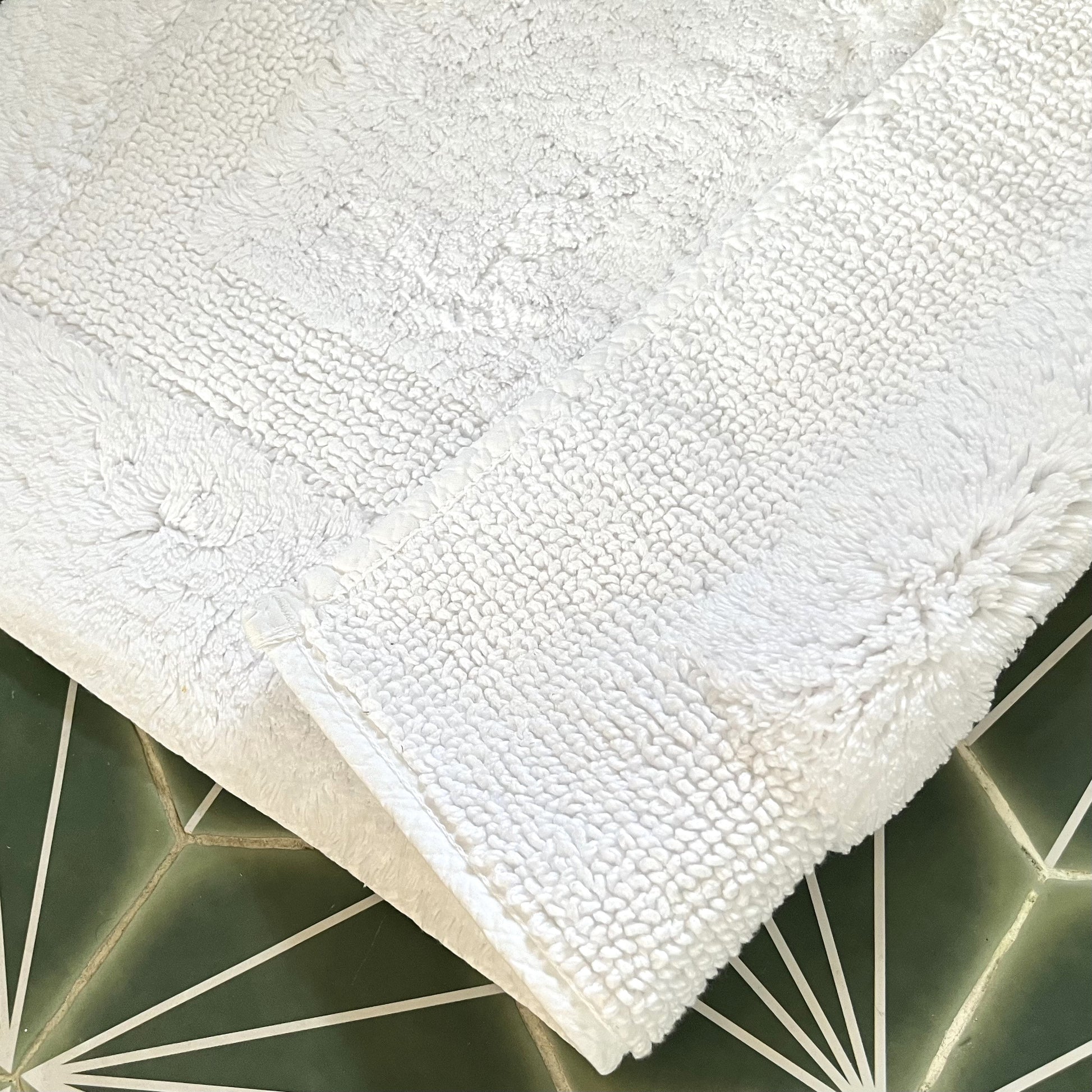 Exceptionally thick and soft this mat is fully reversible with a soft shag pile on one side and a looped pile on the other. Not wishing to skimp, we have two sizes offering an extra large mat for bigger bathrooms.