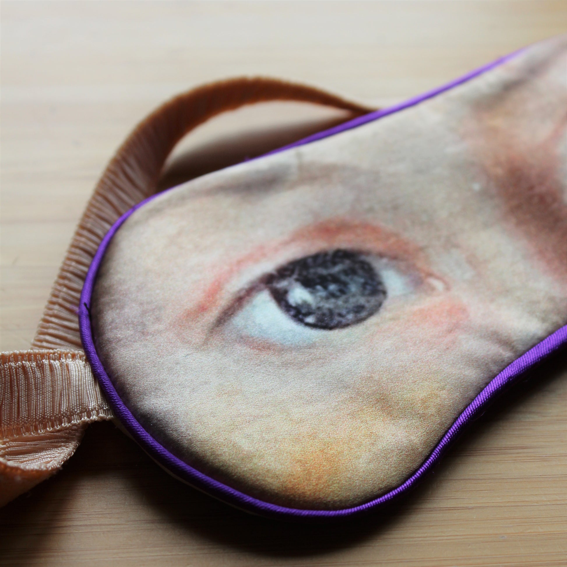 Made of pure silk satin this sleep mask is printed with a detail from a classical portrait. A layer of blackout material between front and back blocks out ambiant light to aid sleep and an elasticated strap ensures a comfortable fit.