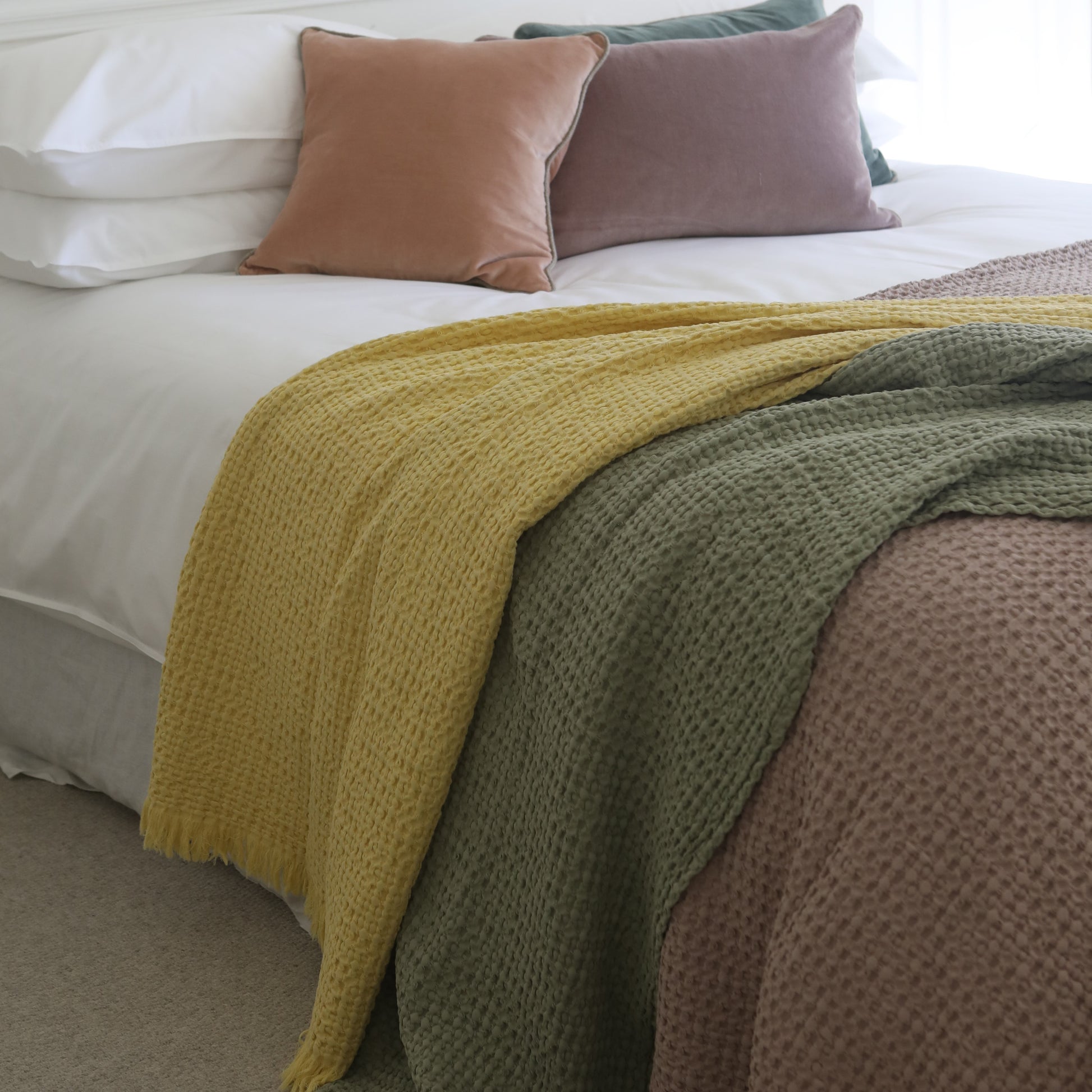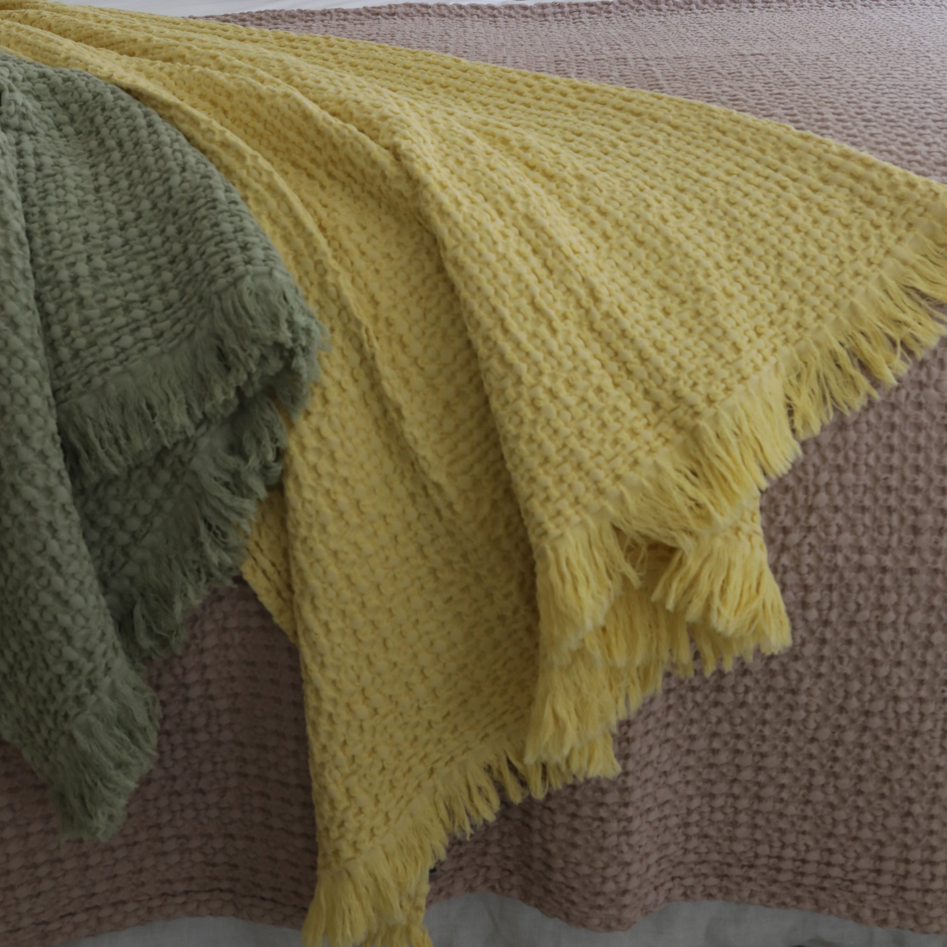 Stonewashed for an aged look and a supersoft handle these throws and bedspreads come in a gorgeous range of colours and in two sizes. The throw has a fringed edge and the bedspread a simple hemmed finish.