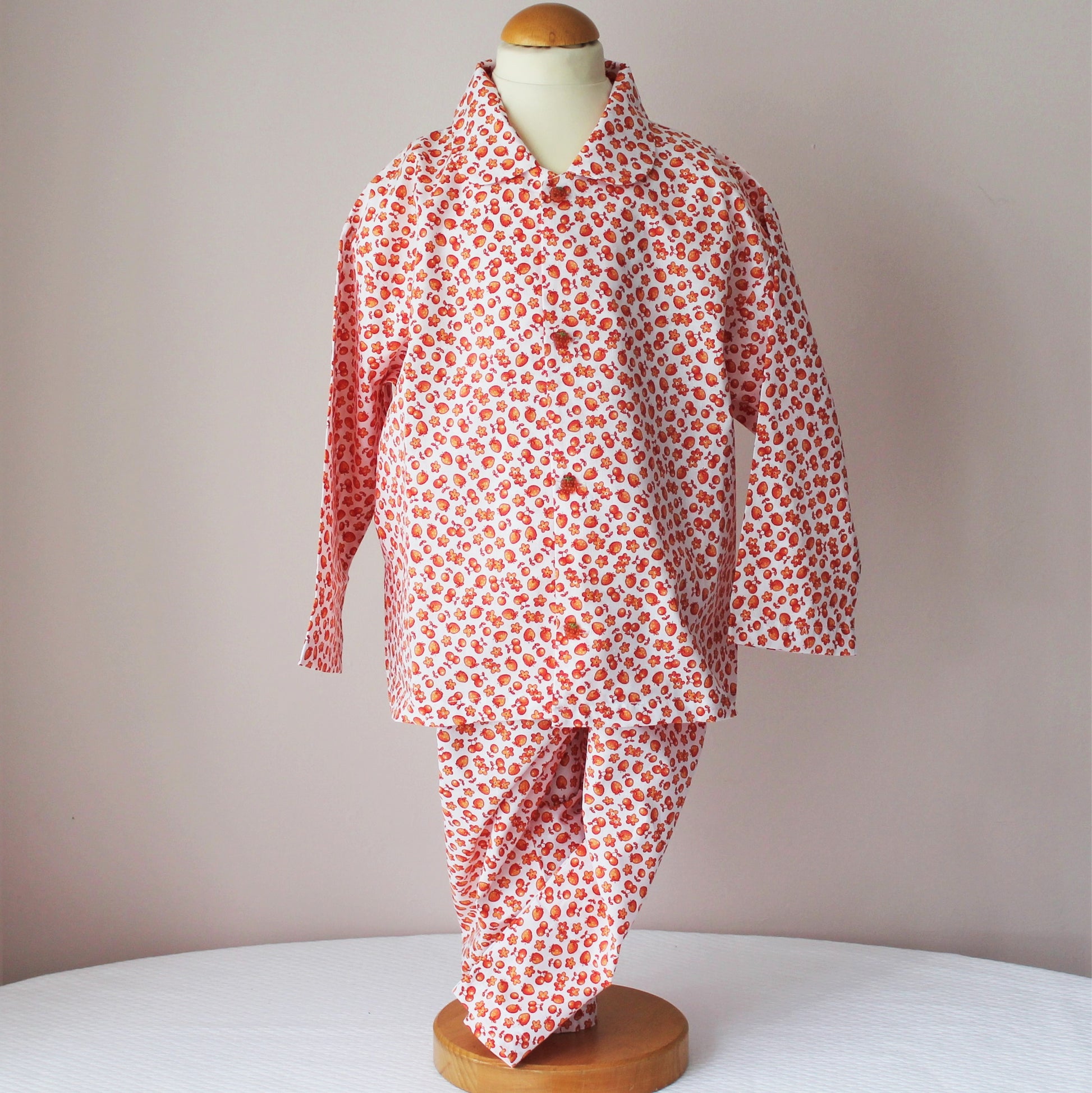 Classic cotton pyjamas in a fruitand flower print thats is ornage on white