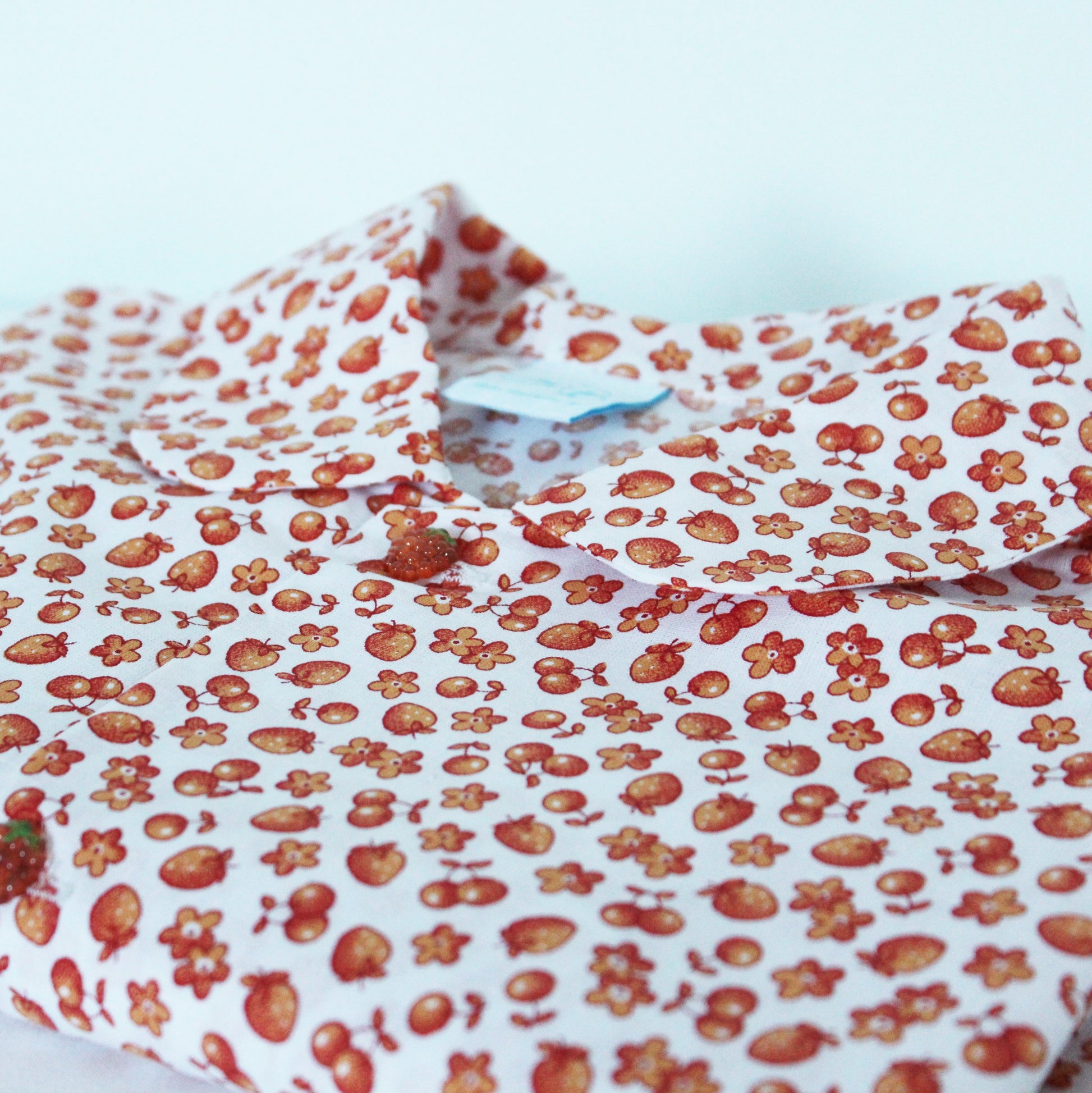 Sweet buttons shaped like raspberries and two patch piockets on the front