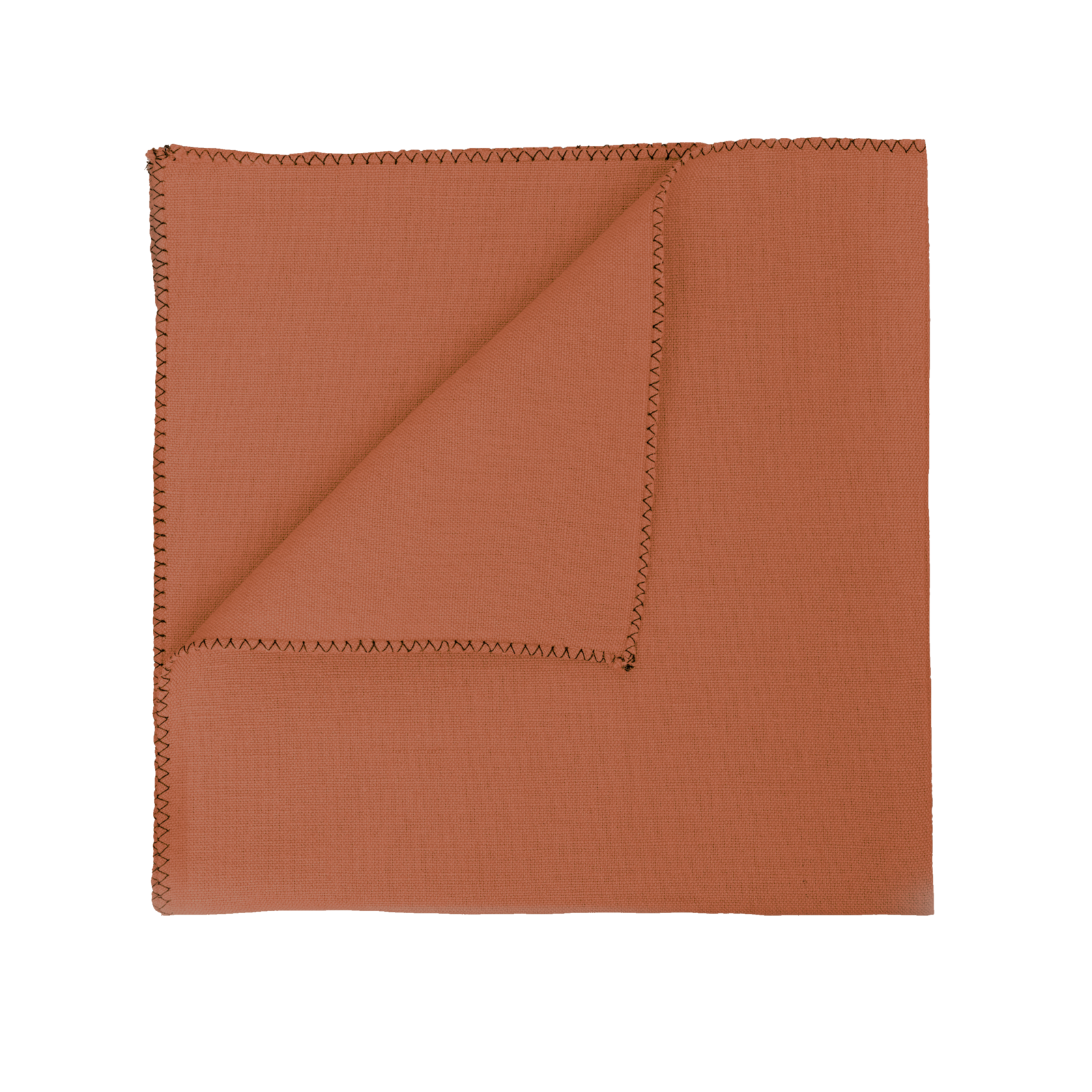 Burnt Orange Linen/Cotton with a simple overlocked stitching feature in black on the edge